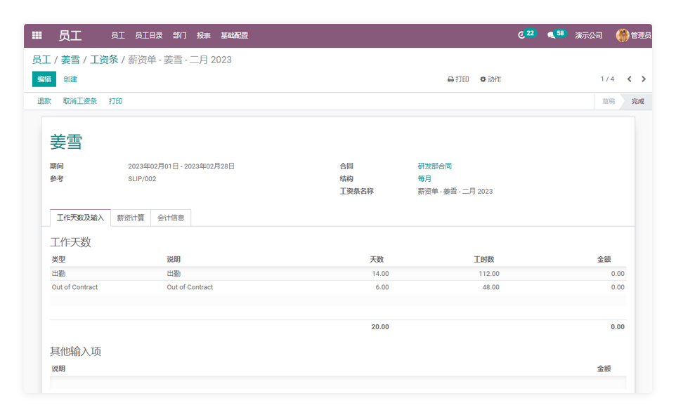 合同 出勤 工时 工资条 休假 组织架构