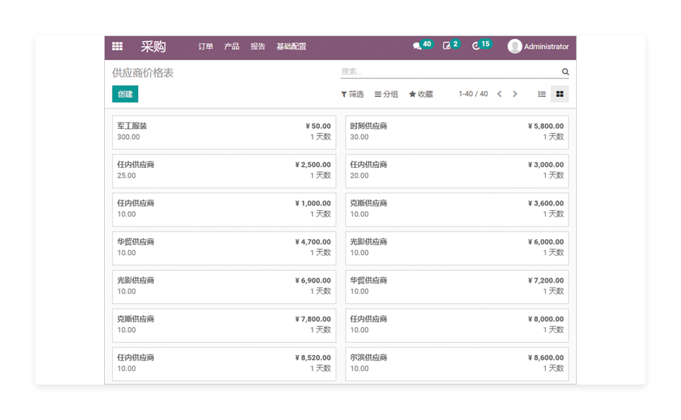 通过灵活的报告获取供应商绩效的准确统计数据(交货延迟、谈判价格折扣、采购数量等)。将采购情况与分析会计整合,分析合同的利润。