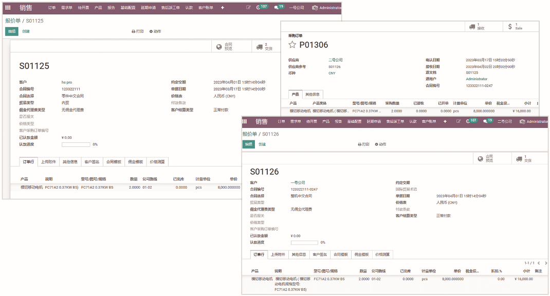 销售模块为用户提供电子合同、电子盖章、电子签名功能,销售单可直接关联交货单和财务数据,并